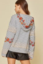 Black/White Striped Embroidered Hoodie