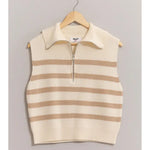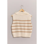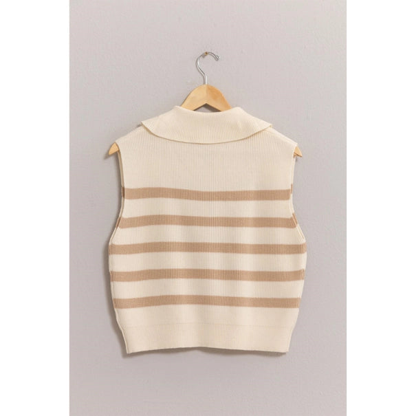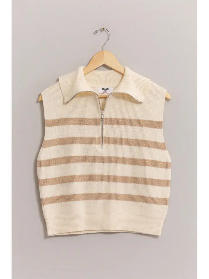 Get Right To Looking Cute With This Sleeveless Sweater. It Has A Collared Neck With An Easy Half-Zip Closure That Provides Styling Versatility. The Striped Pattern Adds A Touch Of Timelessness, Complete With A Relaxed Fit And A Fitted Hem.