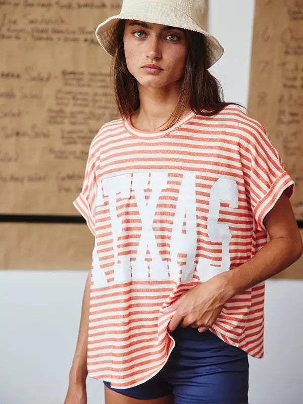 Imagine slipping into the TEXAS Graphic Stripe Print Sweatshirt Top on a cozy weekend morning. The crew neck offers that perfect, relaxed fit, while the short drop-shoulder sleeves add a touch of laid-back style—ideal for lounging around or running errands. The pullover design means you can throw it on effortlessly, and the textured stripe knit adds a unique flair that keeps it from feeling basic. Whether you pair it with your favorite jeans or comfy joggers, this sweatshirt is all about casual comfort with a hint of personality!
