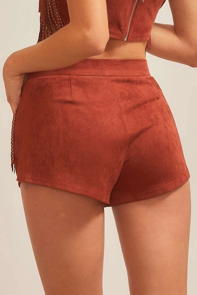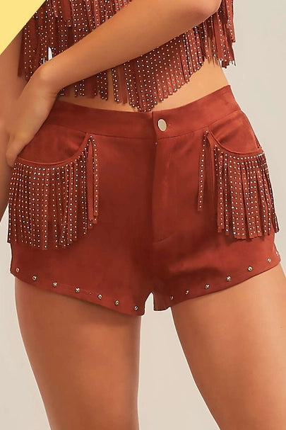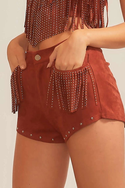 Live out your cute cowgirl dreams this rodeo with our fringe suede shorts! These shorts features fringe all along the pockets and studs all along the fringe to give it a little extra shine! Make sure to check out our matching top for a seamless look!