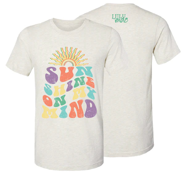 SUNSHINE ON MY MIND! THIS DESIGN IS PART OF THE LULU MAC LINE OF BOUTIQUE T-SHIRTS! YOU GET BEAUTIFUL TEES BY GIRLIE GIRL ORIGINALS THAT YOU'VE COME TO EXPECT BUT WITH A NEW DESIGNER LOOK AND FEEL. ALL LULU MAC DESIGNS ARE PRINTED ON SUPER SOFT GIRLIE GIRL TEES.