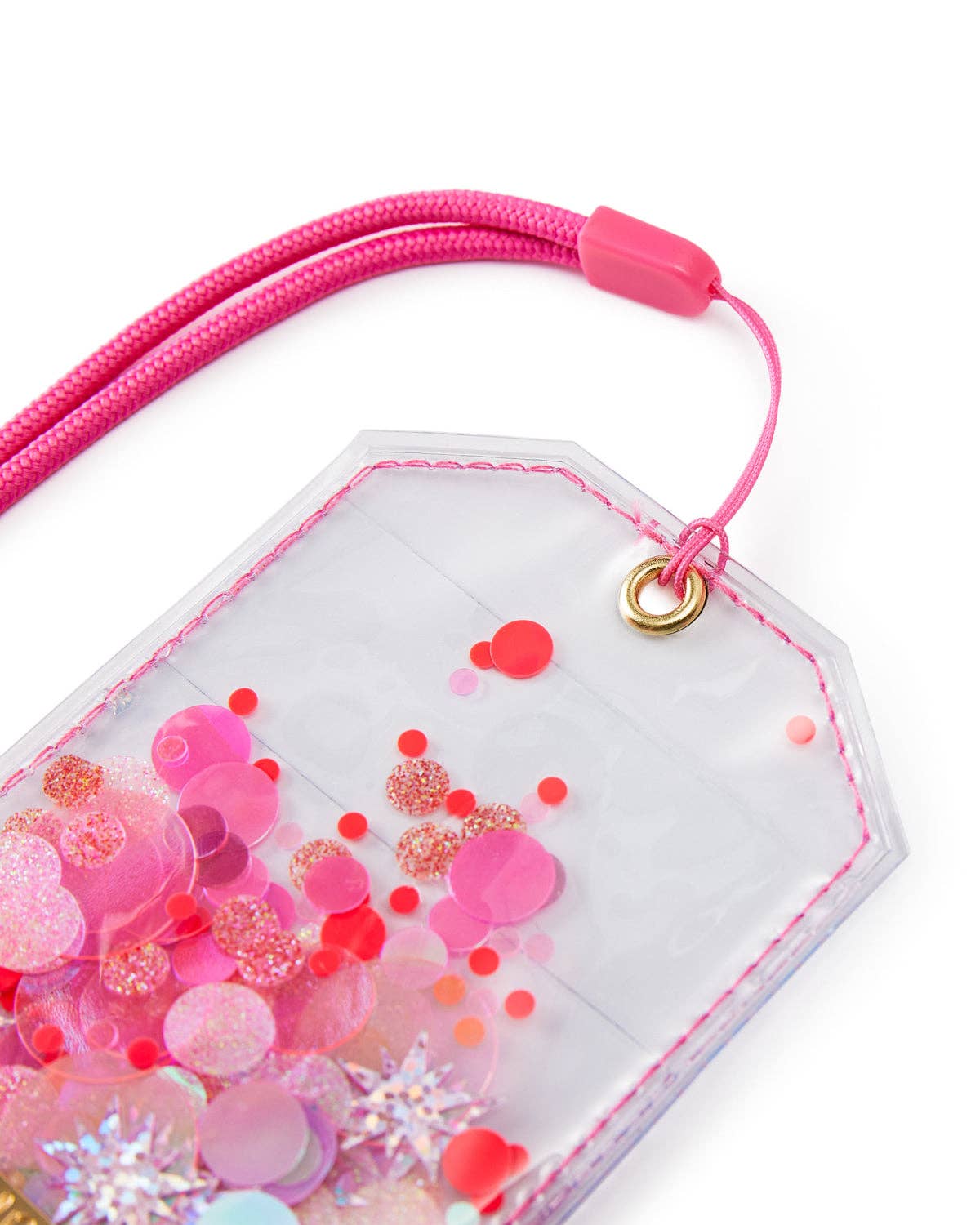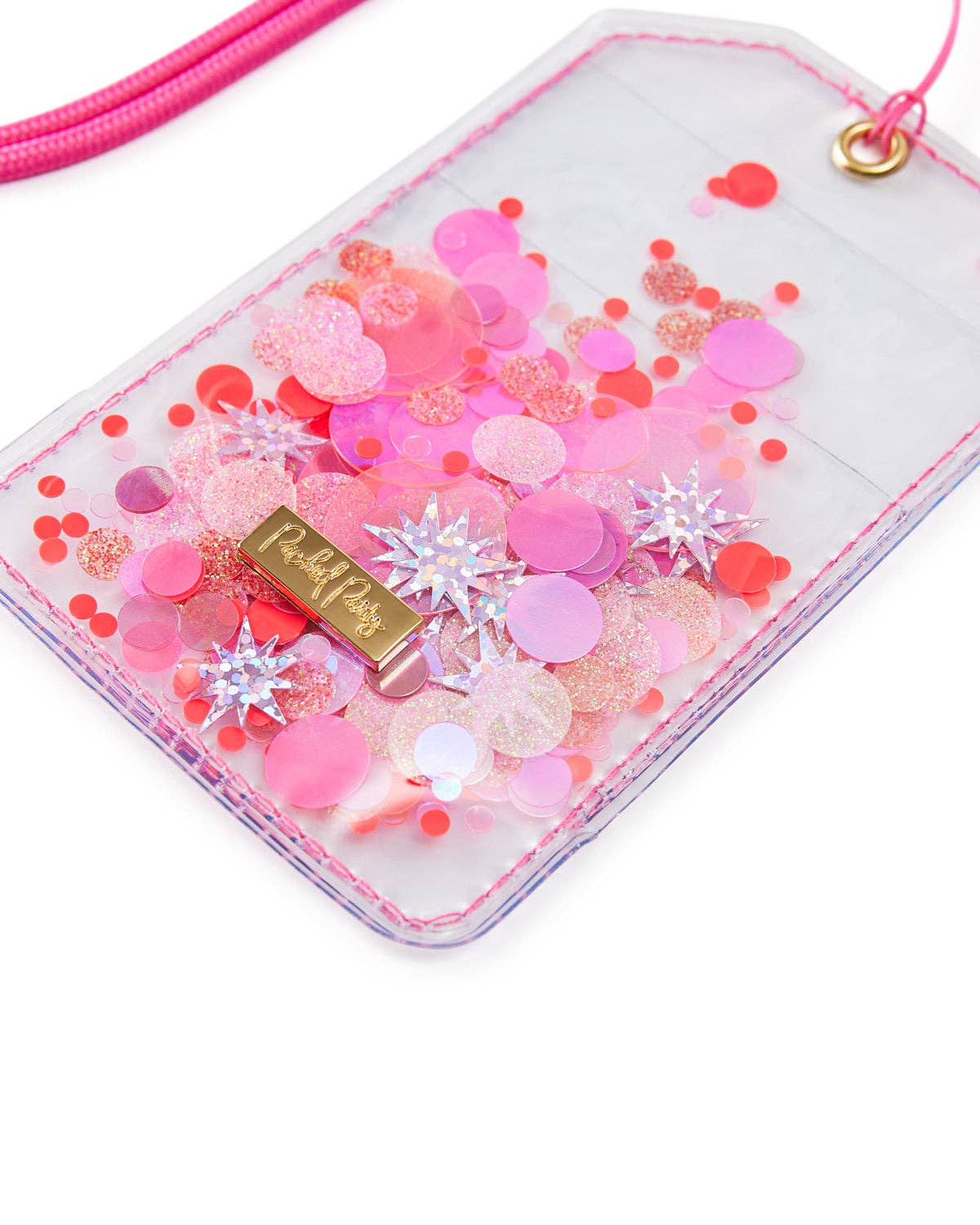 Make your keycard or ID badge more fun with this confetti lanyard! Featuring our Sweet Tart pink confetti and two card pockets, this lanyard is the perfect accessory for students, nurses, or anyone really! - Dimensions: 3.25" x 4.5" - Heavy-weight clear vinyl filled with trapped sweet tart confetti - 2 vinyl pockets for an ID, key card, or credit card - Includes a breakaway fastener for easy removal - Compliant with many schools and hospital guidelines - Made with durable nylon material that is anti-wrinkle, soft & smooth for comfortable wear - Silver finishes & hardware CARE: Spot clean with a damp white cloth