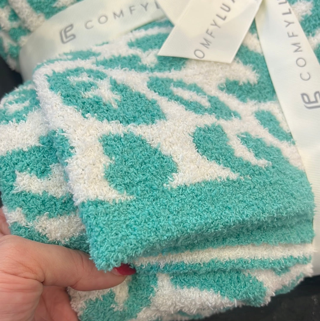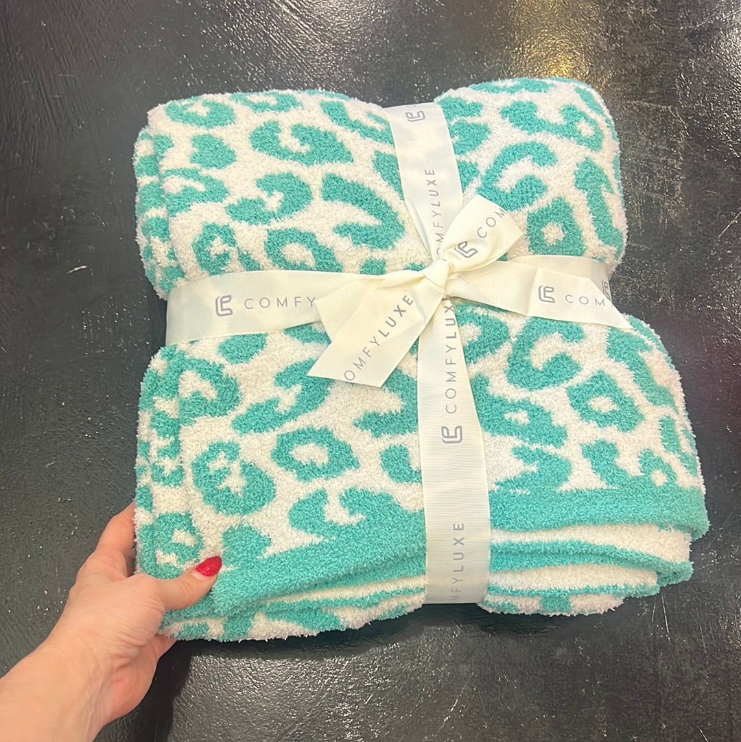 Teal Deluxe Leopard Blanket