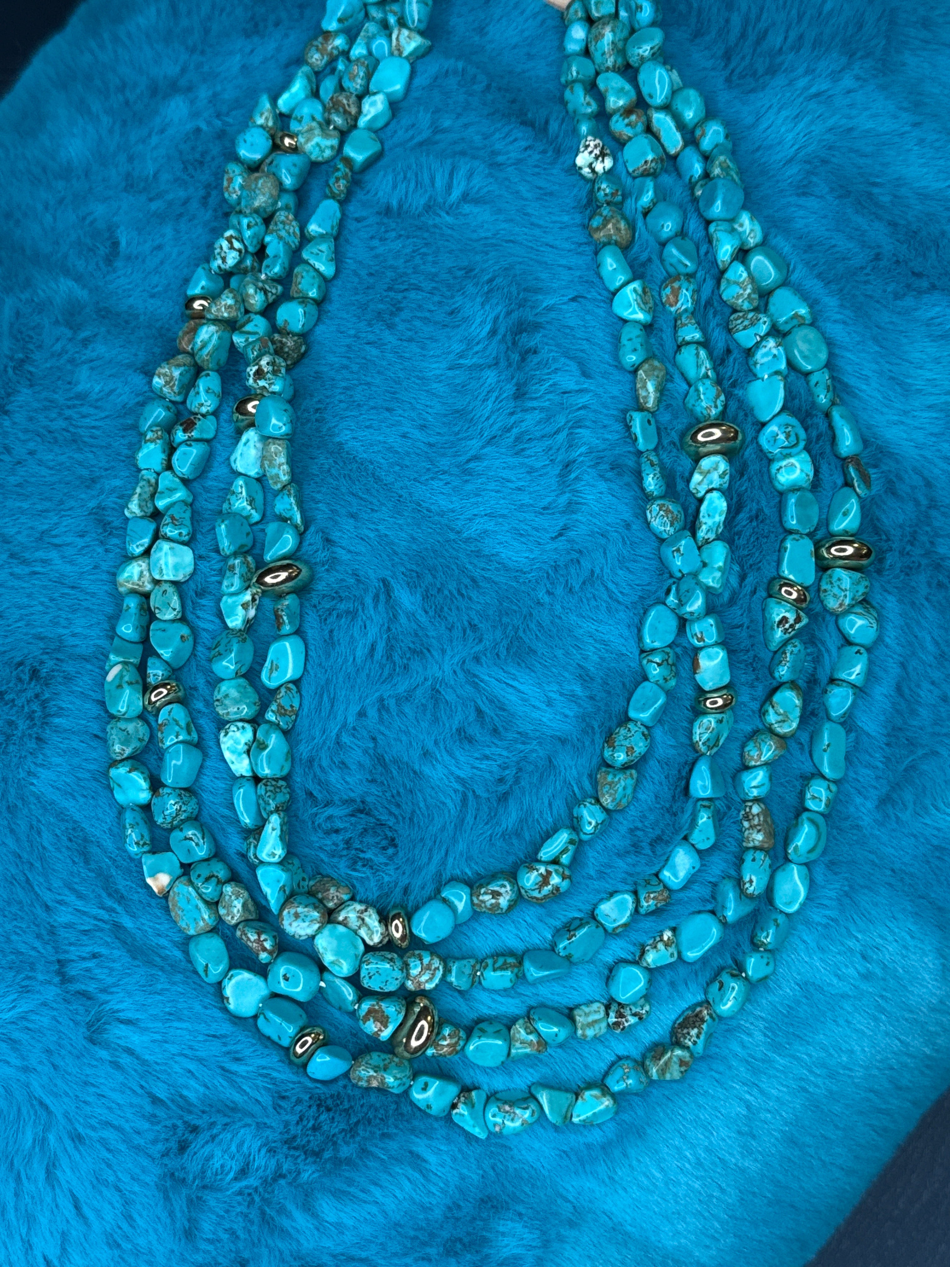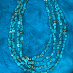 4 layers of Real turquoise stones with gold dipped accent beads.