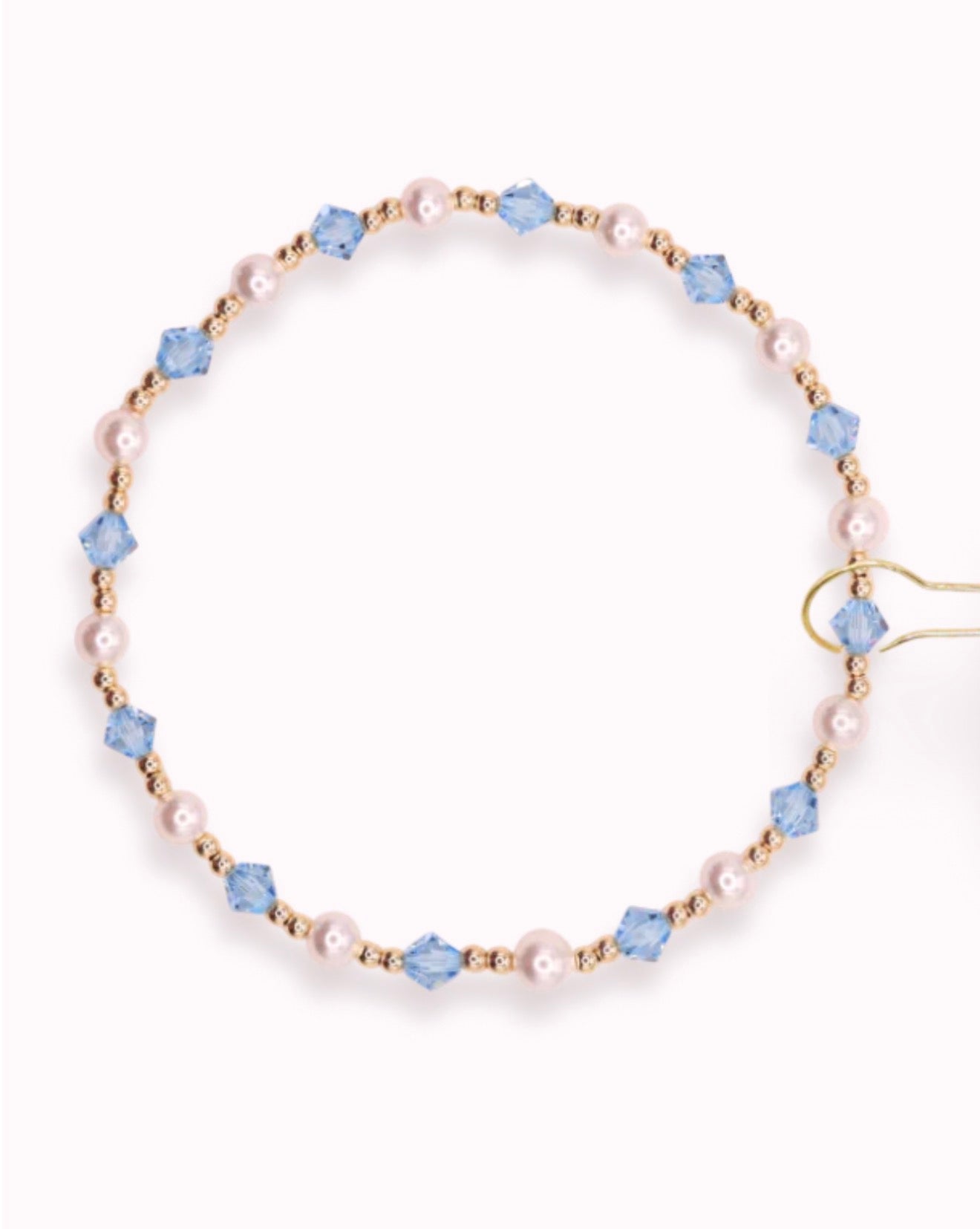 The June Swarovski Bracelet is a mix of 2MM & 4MM Synthetic pearl beads + swarovski beads.