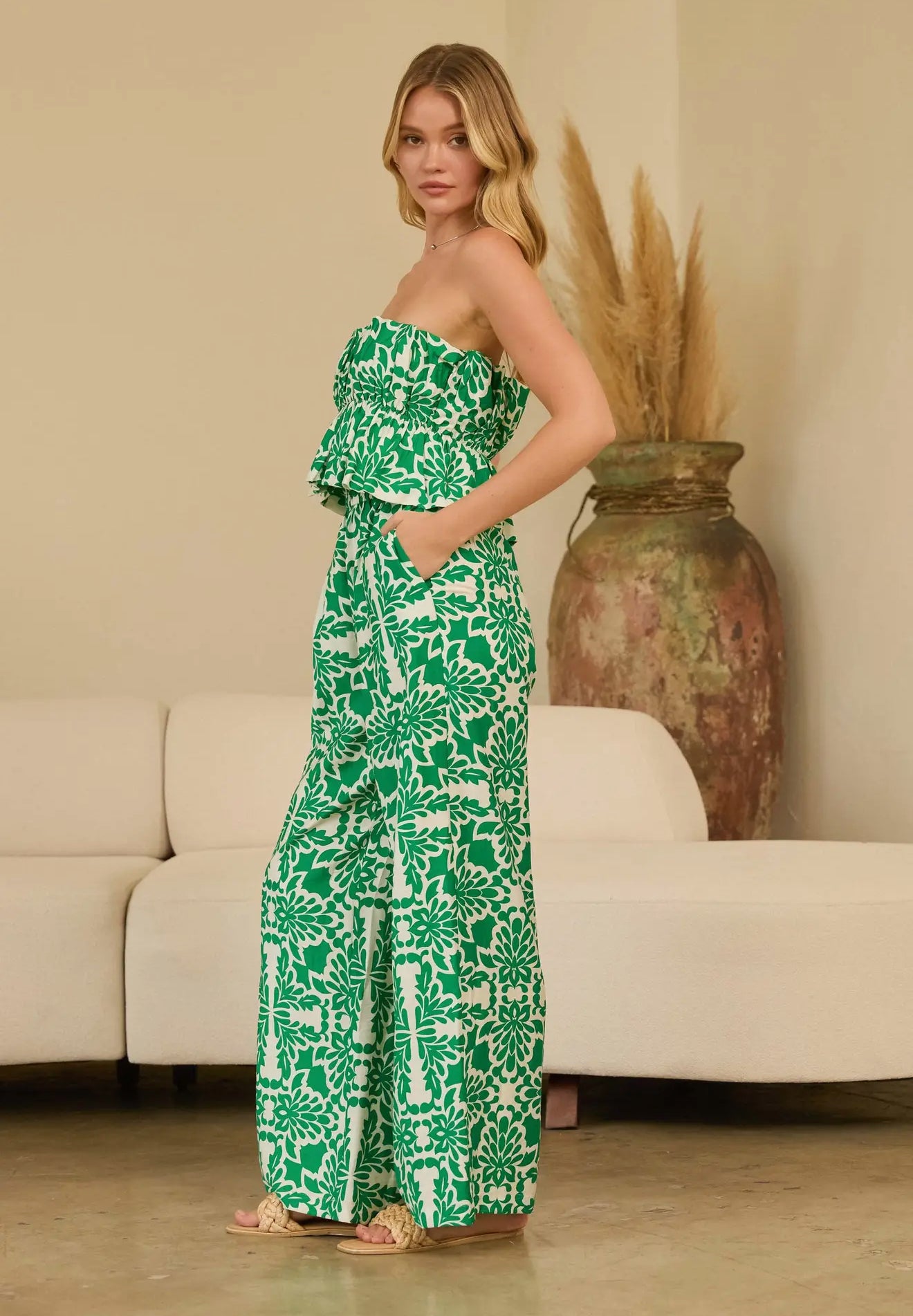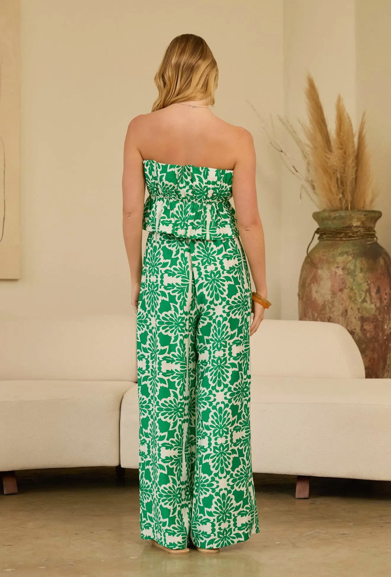 printed jumpsuit, strapless jumpsuit, wide-leg jumpsuit, summer jumpsuit, boho jumpsuit, statement jumpsuit