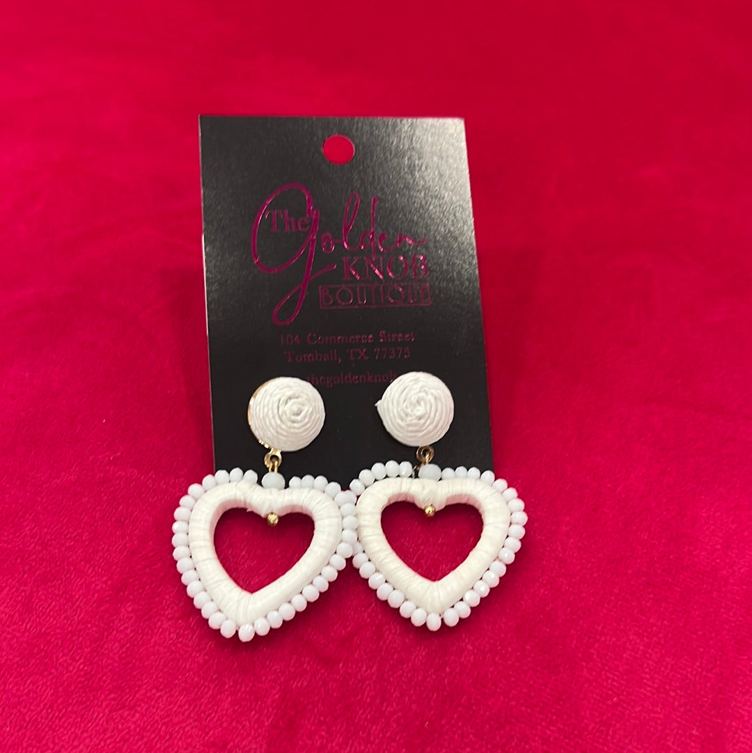 These earrings offer a graceful blend of simplicity and style. Delicately shaped hearts with glistening white beads outlining the heart creates an elegant and versatile accessory for any occasion!