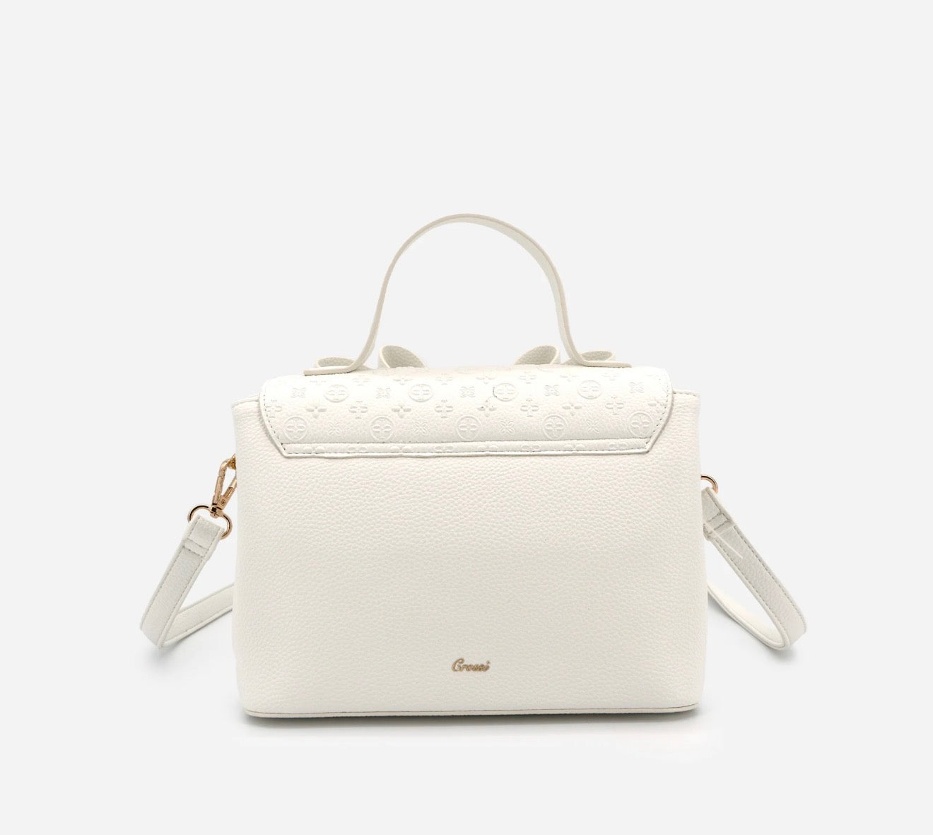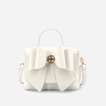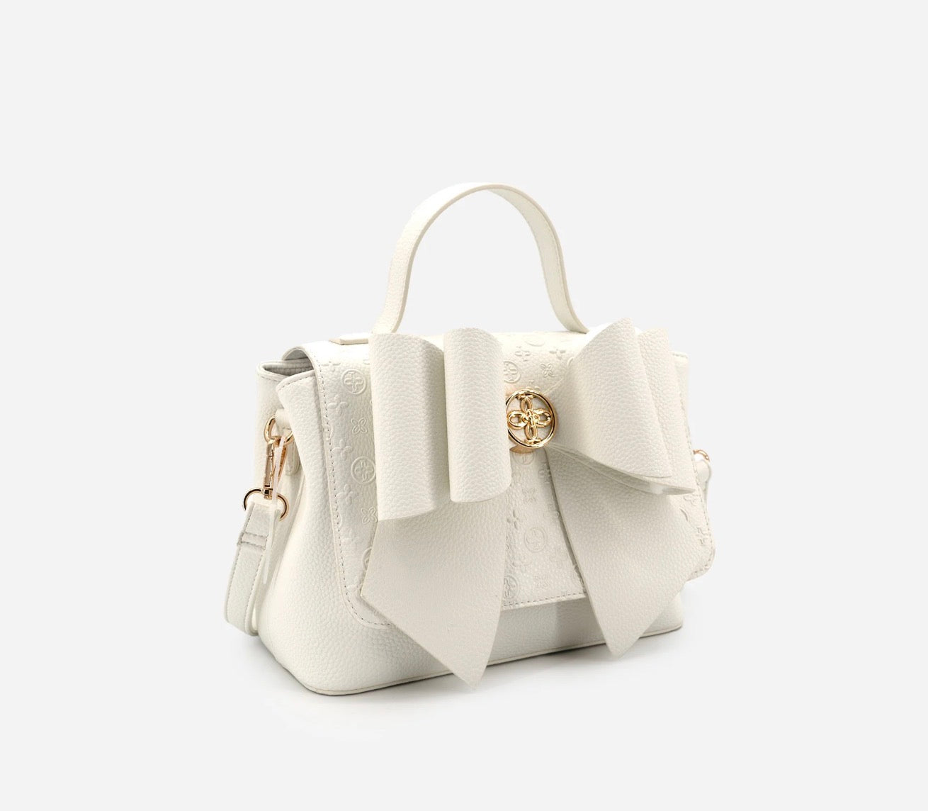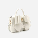 Enhance your style with this smaller flap crossbody, featuring a sculpted bow and structured silhouette. Available in mauve, taupe, or black, its detachable strap and timeless design make it a versatile, polished choice for any season.