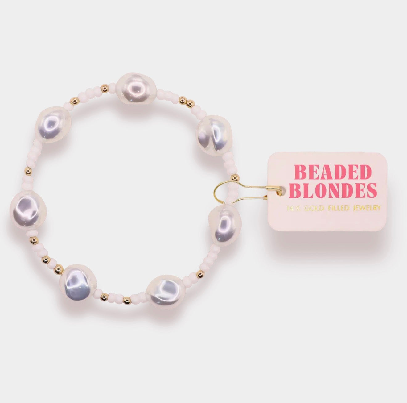 The Sadie bracelet is a mix of large synthetic pearls and 2.5 gold filled beads with czech glass beads in your favorite team's color.