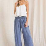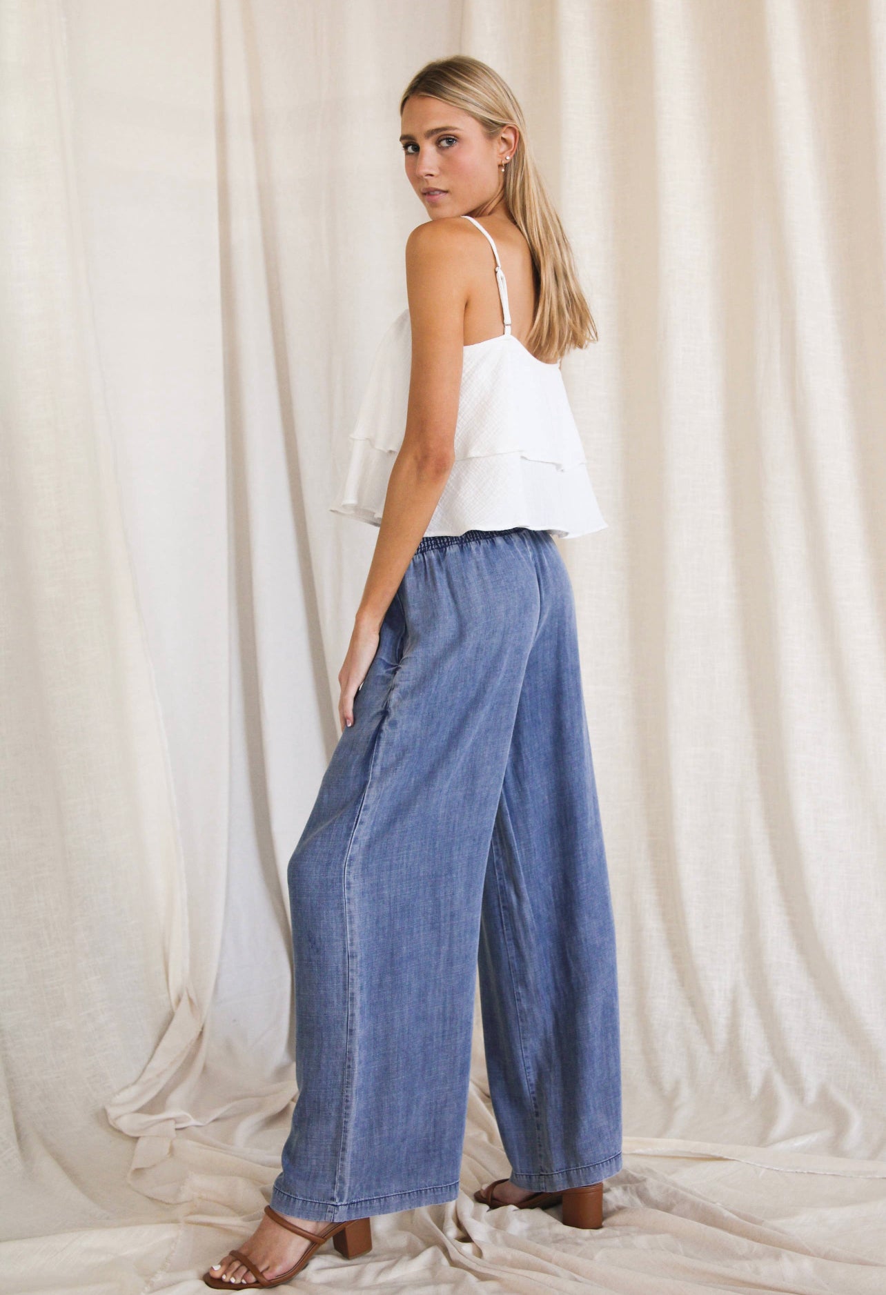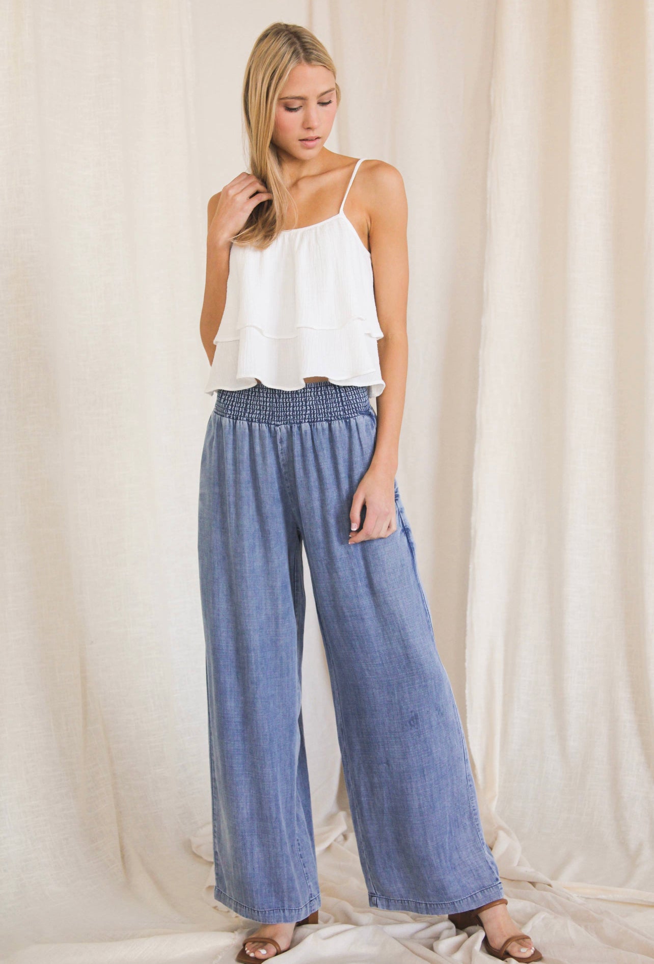 Details: - Tencel fabrication - Wide leg - Smocked waist - Medium wash