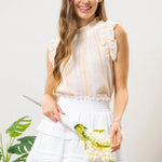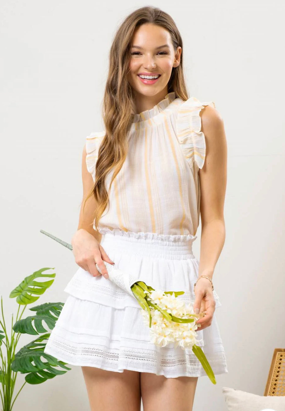 YELLOW STRIPED RUFFLED TOP - MOCK NECKLINE - SLEEVELESS